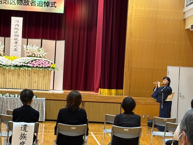 8月14日(木)14時から、河内地域センター大ホールにて、河内地区物故者追悼式が執り行われました。