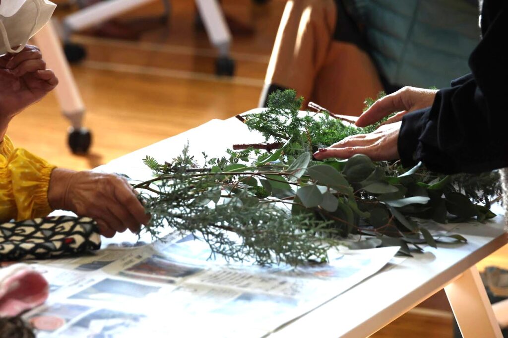 それぞれに完成イメージを膨らませながら、約2時間のリースづくりがスタート。