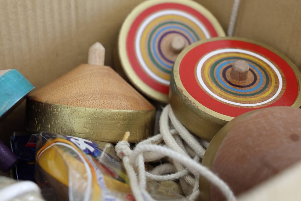 この日行ったのは、こま回しやあやとり、ストロー工作などの昔遊び。